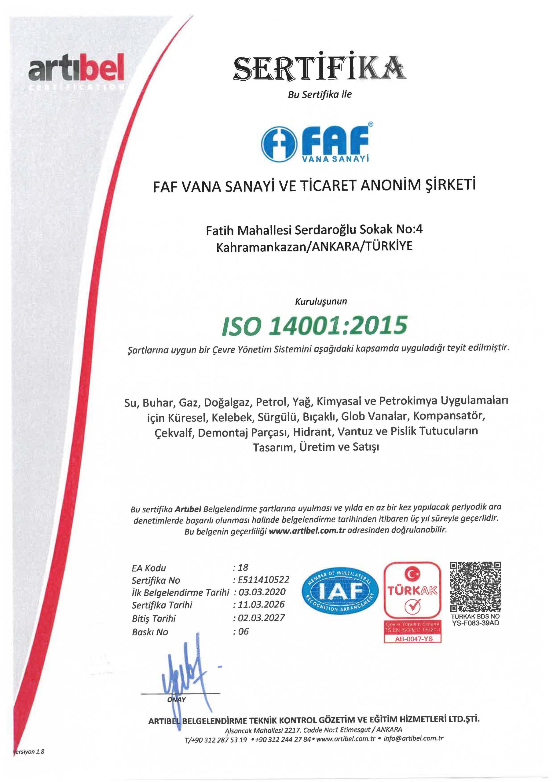 ISO 14001:2015 | FAF Vana Sanayi