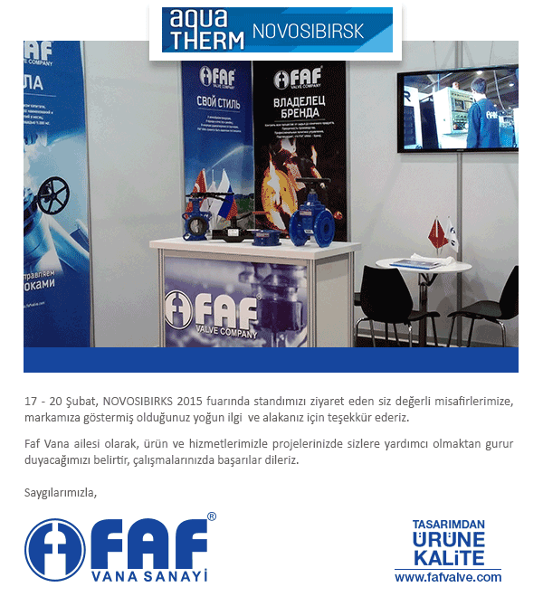 17-20 Şubat, NOVOSIBIRKS 2015 fuarında standımızı ziyaret eden siz değerli misafirlerimize, markamıza göstermiş olduğunuz yoğun ilgi ve alanız için teşekkür ederiz.